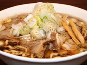 太縮れ麺にからむ真っ黒な濃い口醤油味のブラックラーメン。 一見、しょっぱそうに見える黒スープだが、どっこいこれが風味満点。 豚ガラでとったスープに昆布を加え、隠し味は魚醤(ぎょしょう)。 一口スープを飲むと思ったよりしょっぱくないのが意外な感じ。